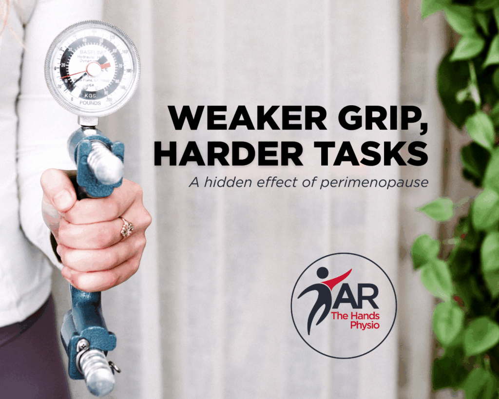 Peri-menopausal women may notice decreased grip strength, difficulties opening jars, or a tendency to drop items.